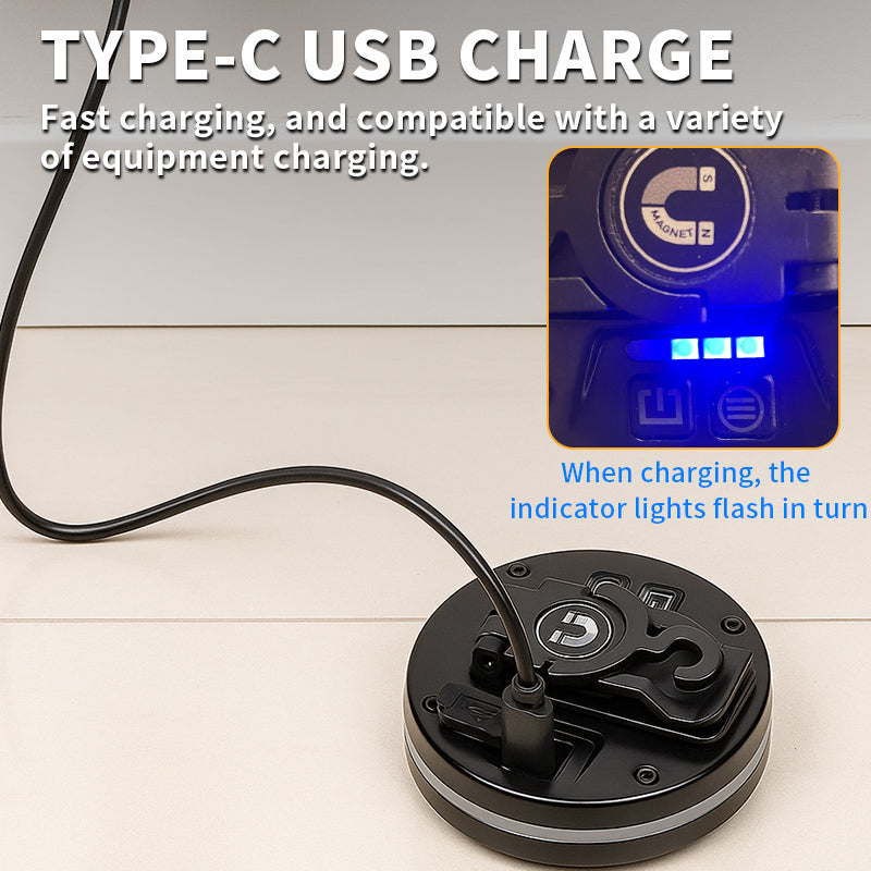 Type-C Charging: 1000mAh battery, 2–3h charge, 4–7h runtime, red/blue indicator